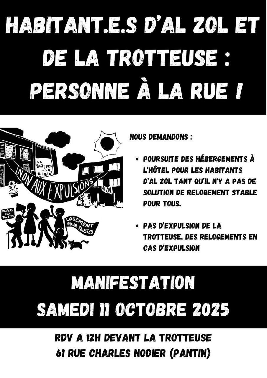 Manifestation à Pantin, départ à 12h de La Trotteuse (61 rue Charles Nodier)